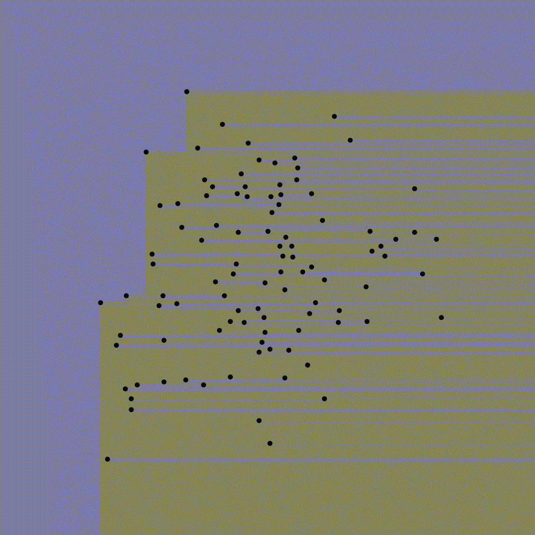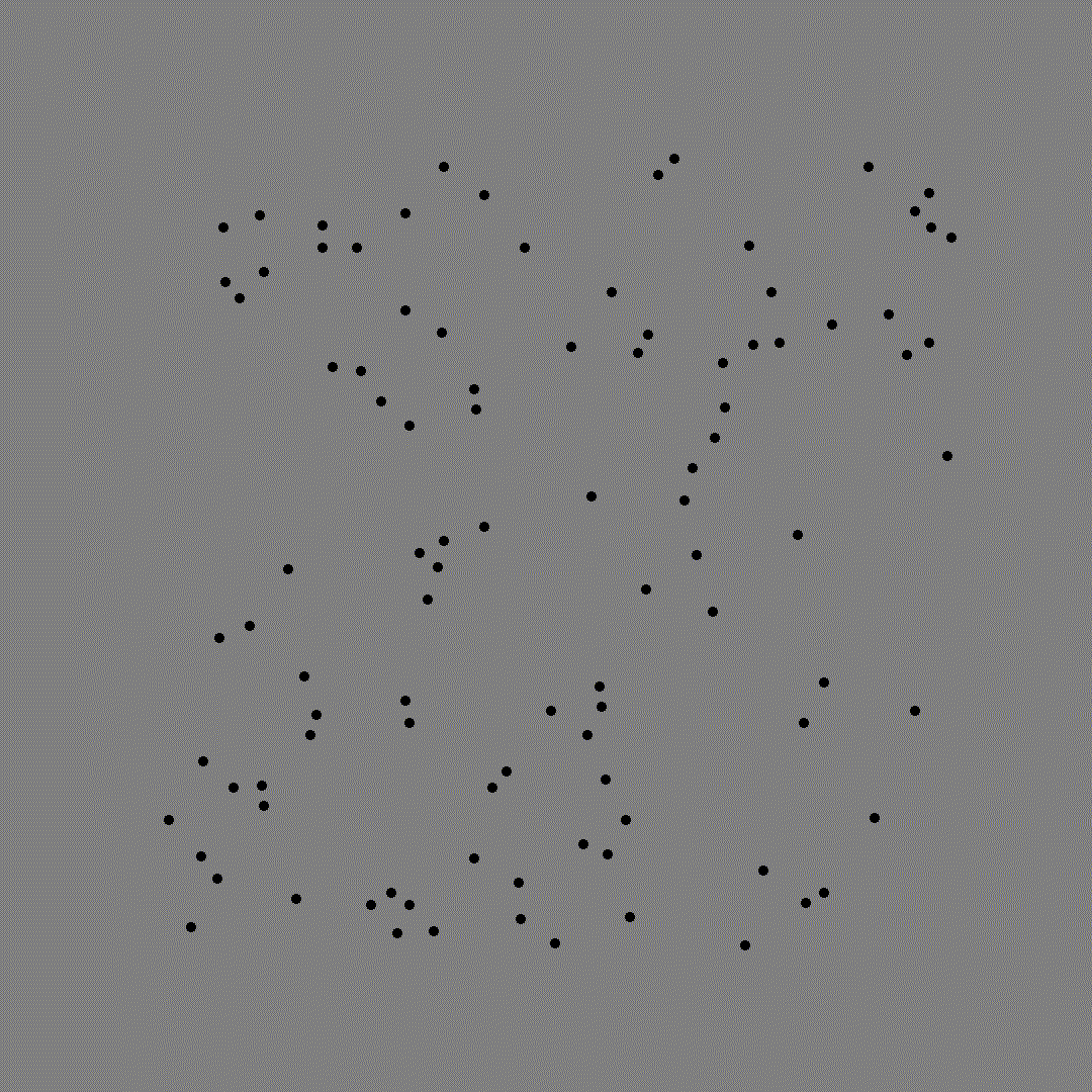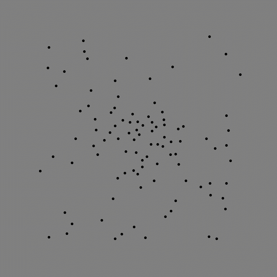 Assume that simplest cluster formation method is to select all dots within a given radius of display center
